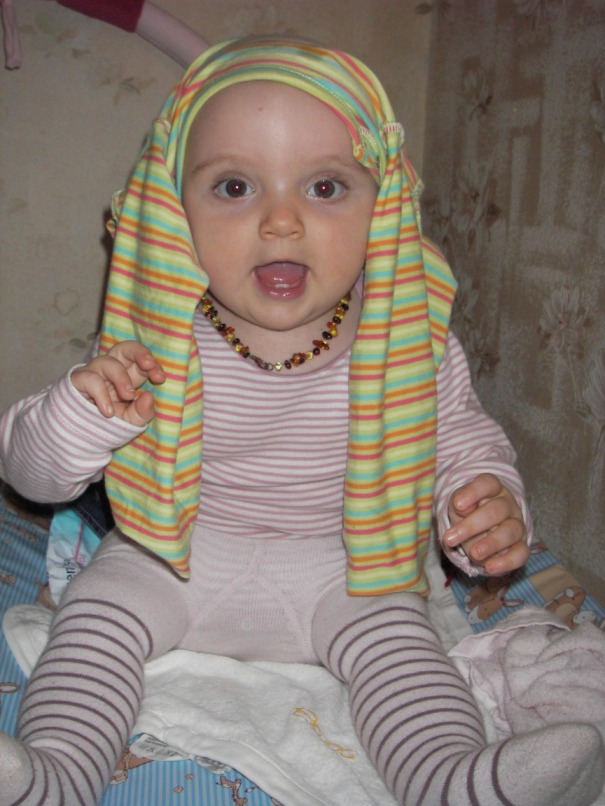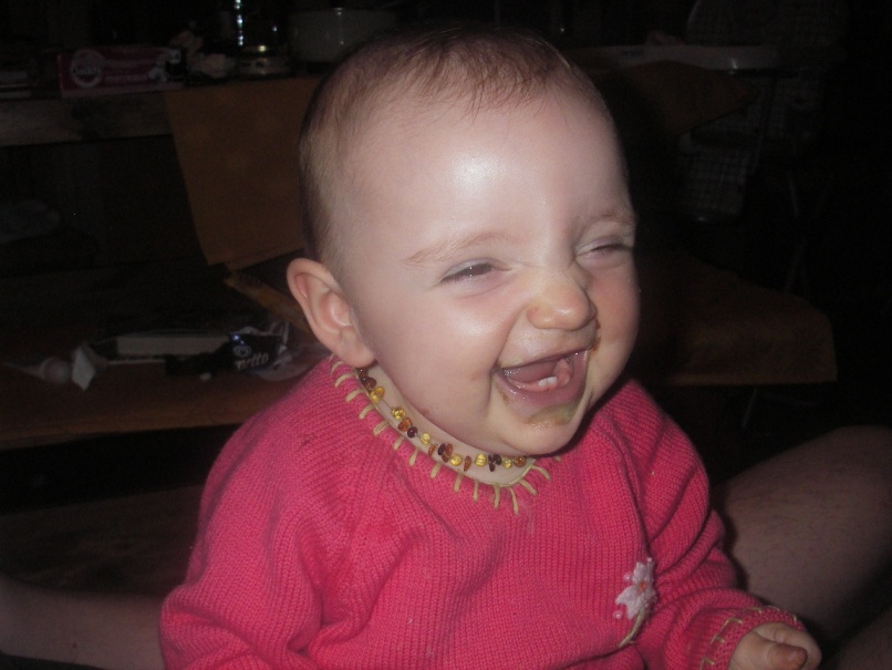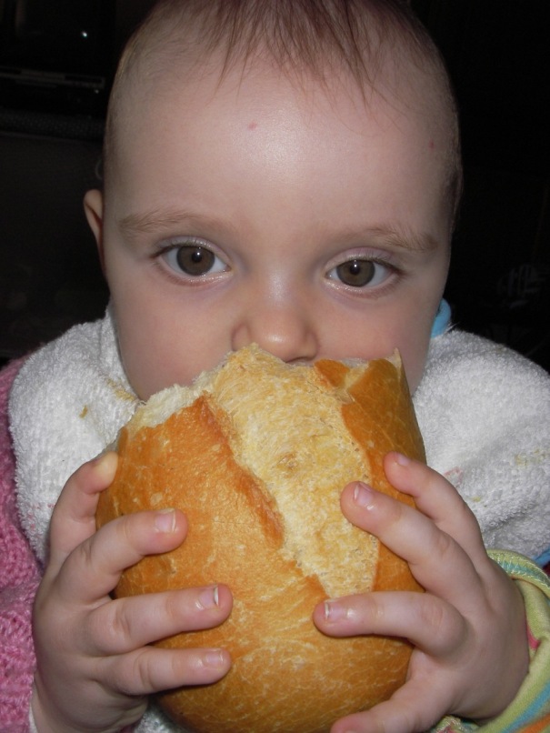 Toujours pas décidé à s'endormir facilement, elle adore déjà les livres et les revues, ses peluches, le pain les purées de légumes "maison" et le jambon blanc, sauter dans son babytrot', et faire des grands sourires aux clientes du magasin.