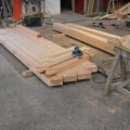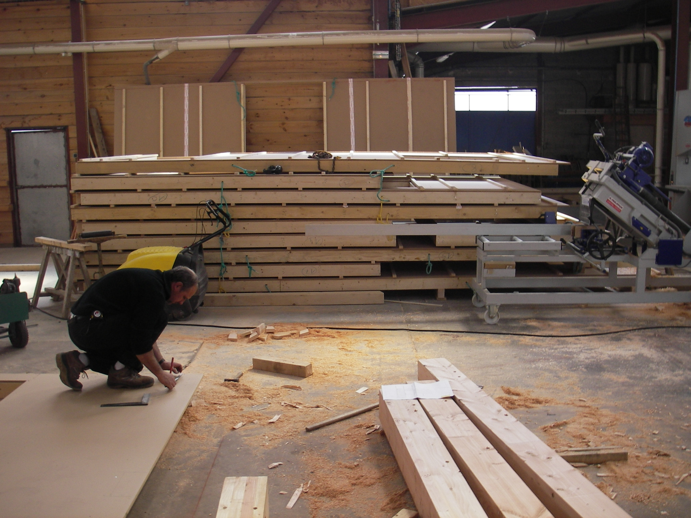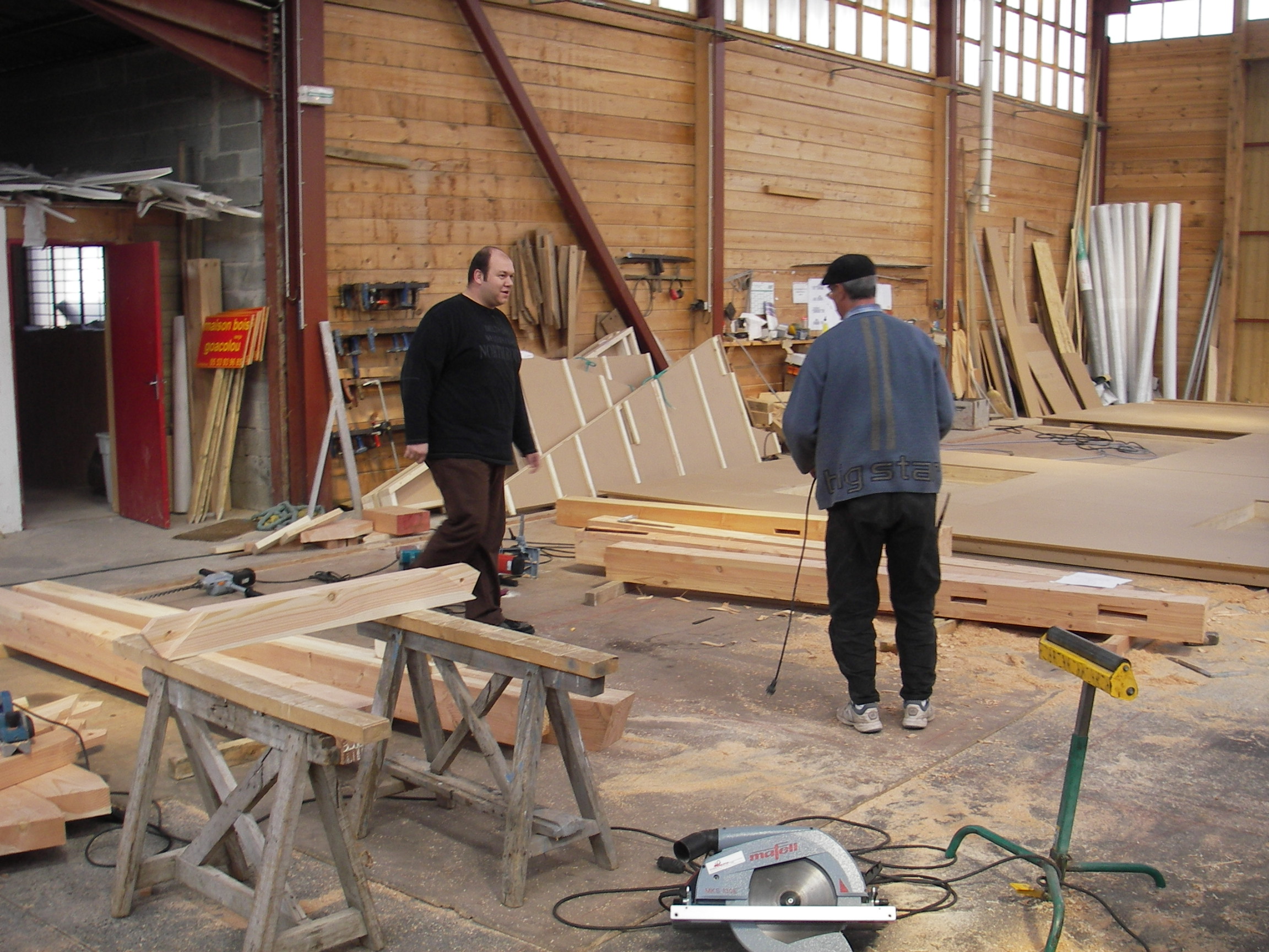 Une partie des murs est déjà faite, il y avait une façade par terre, les poutres des terrasses, le bardage en rétifié était aussi arrivé. Stéphanie n'a pas compris tout de suite comment se montait ce lego mais Aloysia était contente de voir tout ça.
