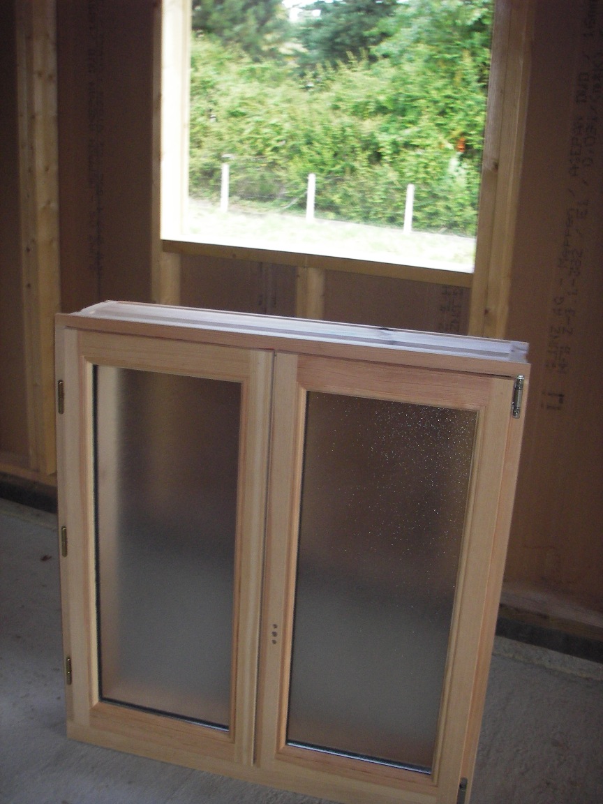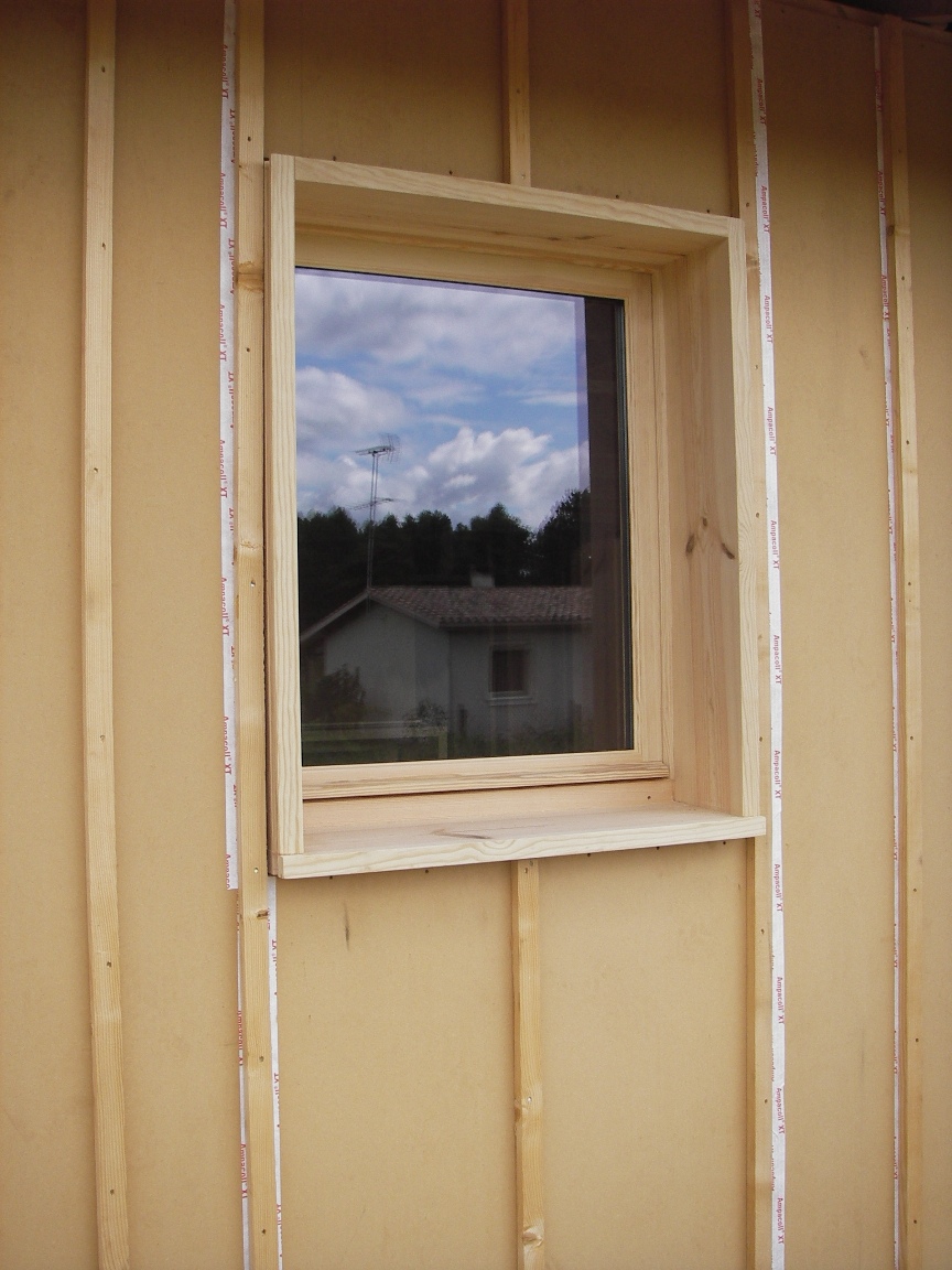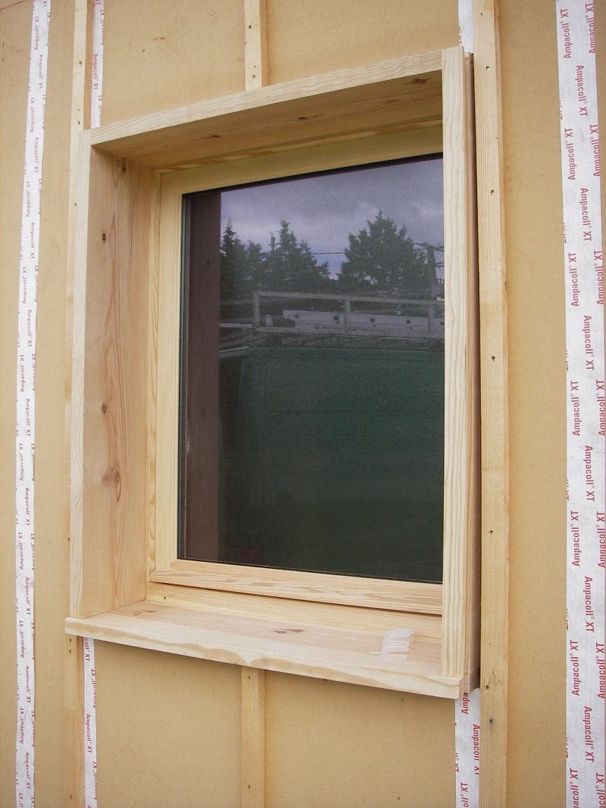 Menuiseries en pin sylvestre des Vosges avec pré-cadre en pin maritime des Landes.