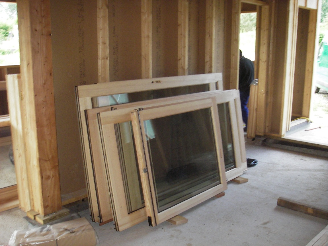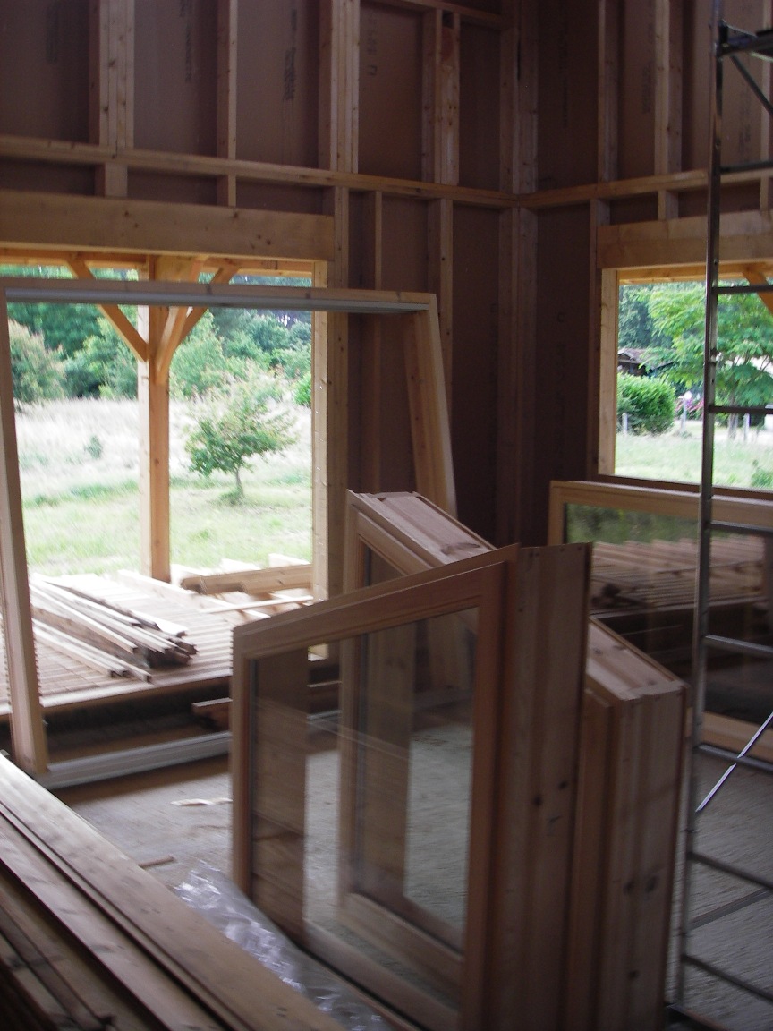 Elles sont enfin arrivées ! Nos belles menuiseries en bois de pays. Hier matin à 8h le menuisier poseur était à l'heure et les 2 fourgons aussi. Elles sont magnifiques.